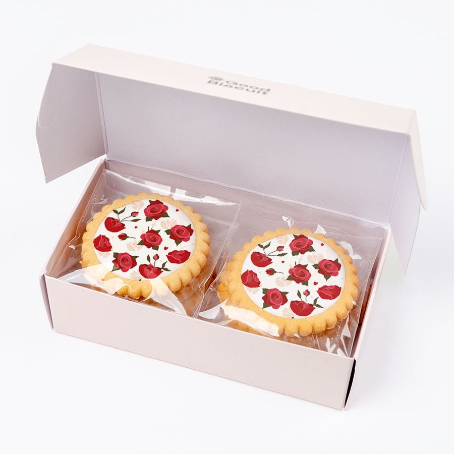 Le coffret de 10 biscuits décorés Collection Roses met à l’honneur un motif floral iconique, délicat et romantique. Chaque biscuit est orné d’illustrations de roses aux teintes douces et harmonieuses, créant un ensemble raffiné qui évoque autant la gourmandise que l’élégance.